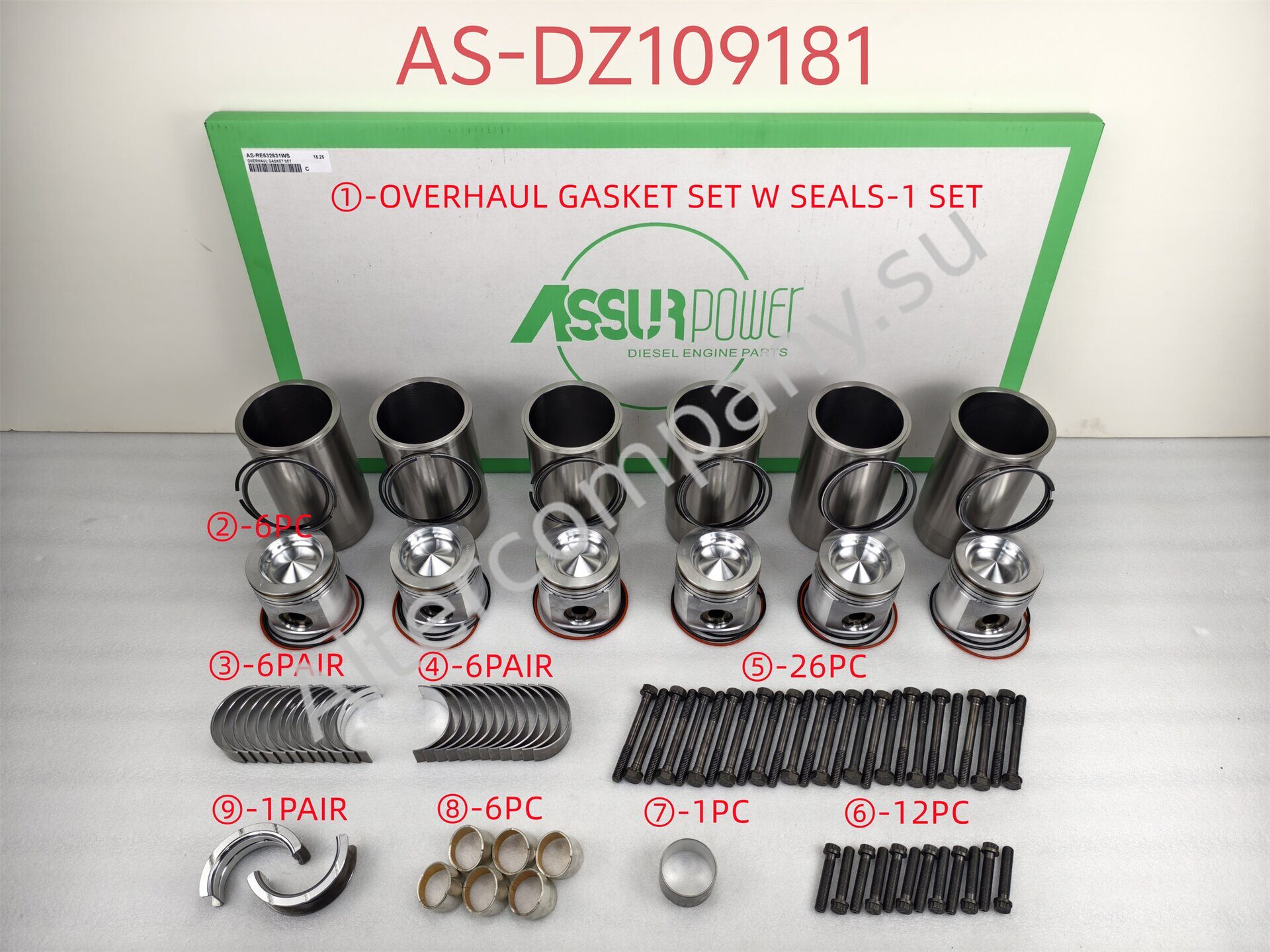 AS-DZ109181 ASSURPOWER - фирменный ремонтный комплект для капитального ремонта двигателя John Deere 6068.